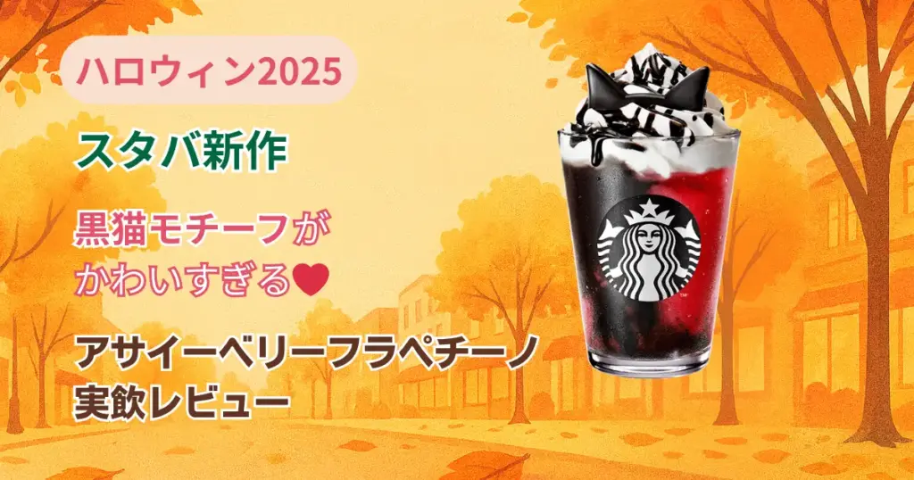 黒猫フラペチーノと最強ペアな“甘酸っぱハロウィン”! スターバックスのショーケースに、秋の魔法がそっと忍び込みました。2025年10月、期間限定で登場したのが――👻 「ハロウィン チョコ&ベリーデニッシュ」! 見た目は小さくても、その存在感は抜群。チ... グルメ【スタバ新作】黒猫モチーフがかわいすぎる♡「アサイーベリーフラペチーノ」を実飲レビュー!
